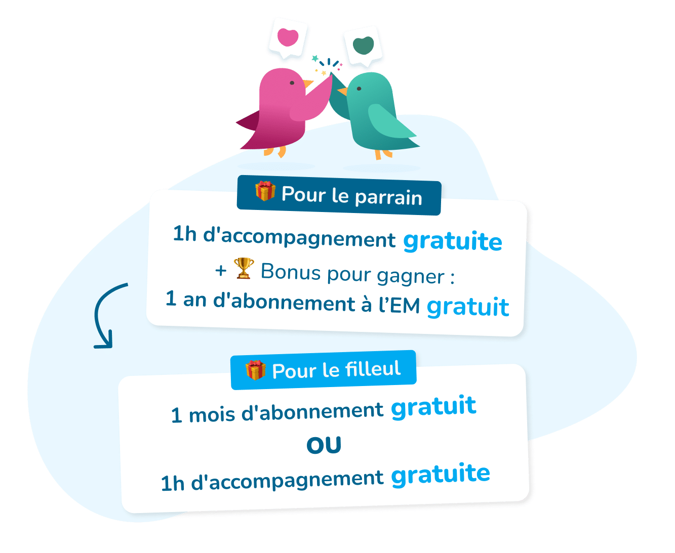4️⃣ Dès que l’abonnement annuel sera validé, votre filleul et vous recevrez un email avec votre récompense et la marche à suivre pour sa mise en place.