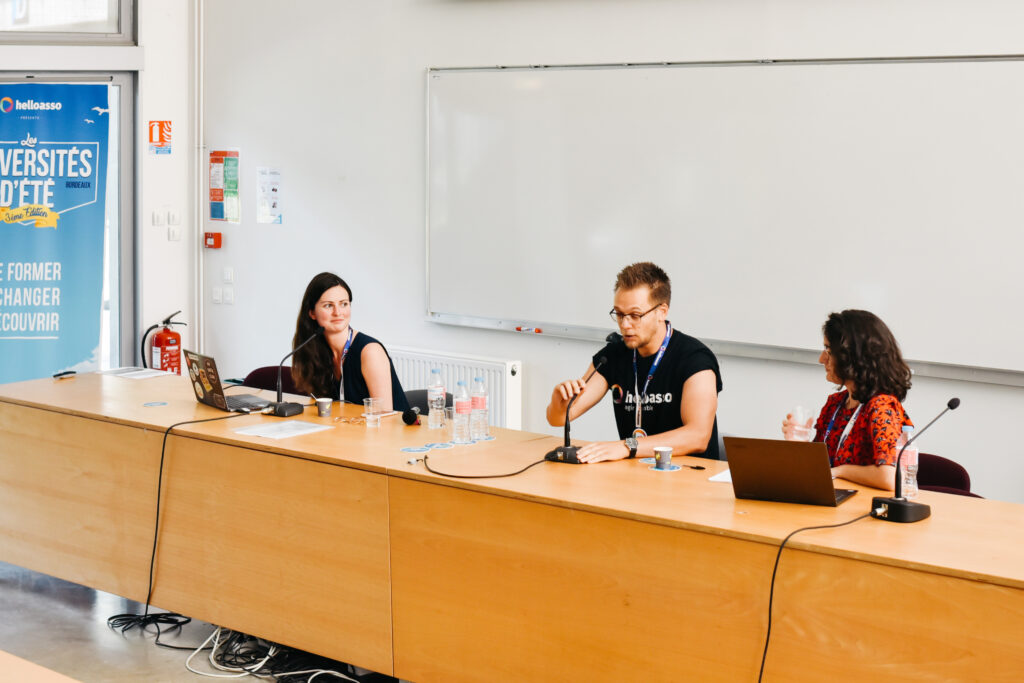 Crédit photo : HelloAsso, quand on est venues parler Gestion des Données aux Universités d’été de HelloAsso en 2019 ! 😉