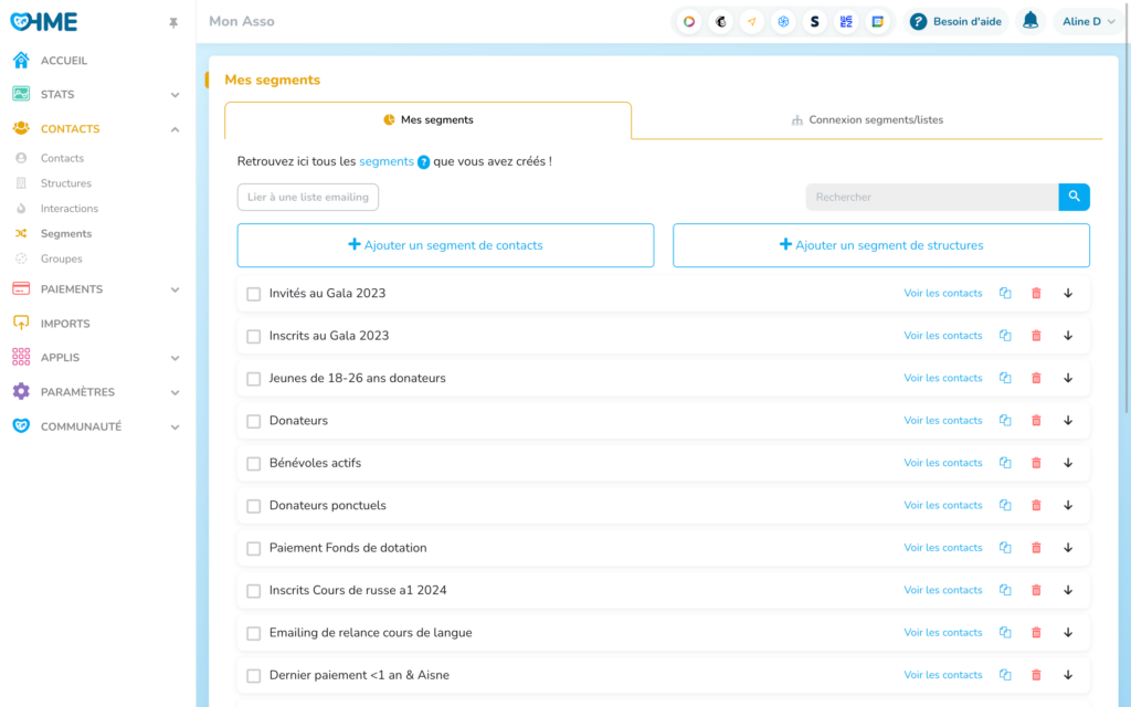 Créez des recherches avancés composées de plusieurs critères afin de lier certains contacts à vos listes emailings.
