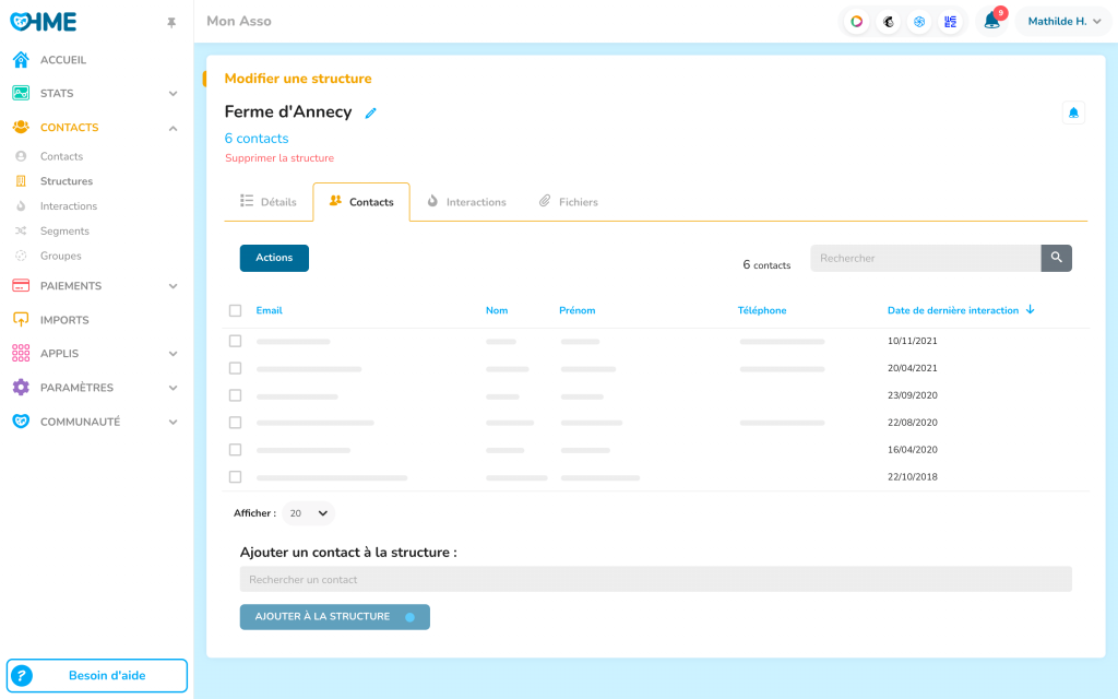 Gérez vos structures comme vous gérez vos contacts, attribuez leur des champs personnalisés...