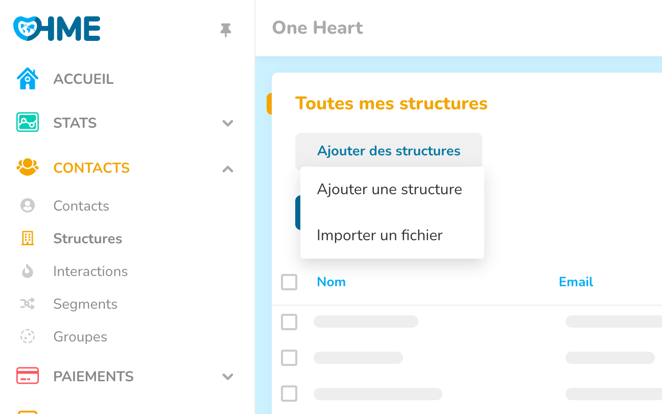 Créez vos contacts et structures et connectez vos applis pour centraliser toutes vos données sur OHME.