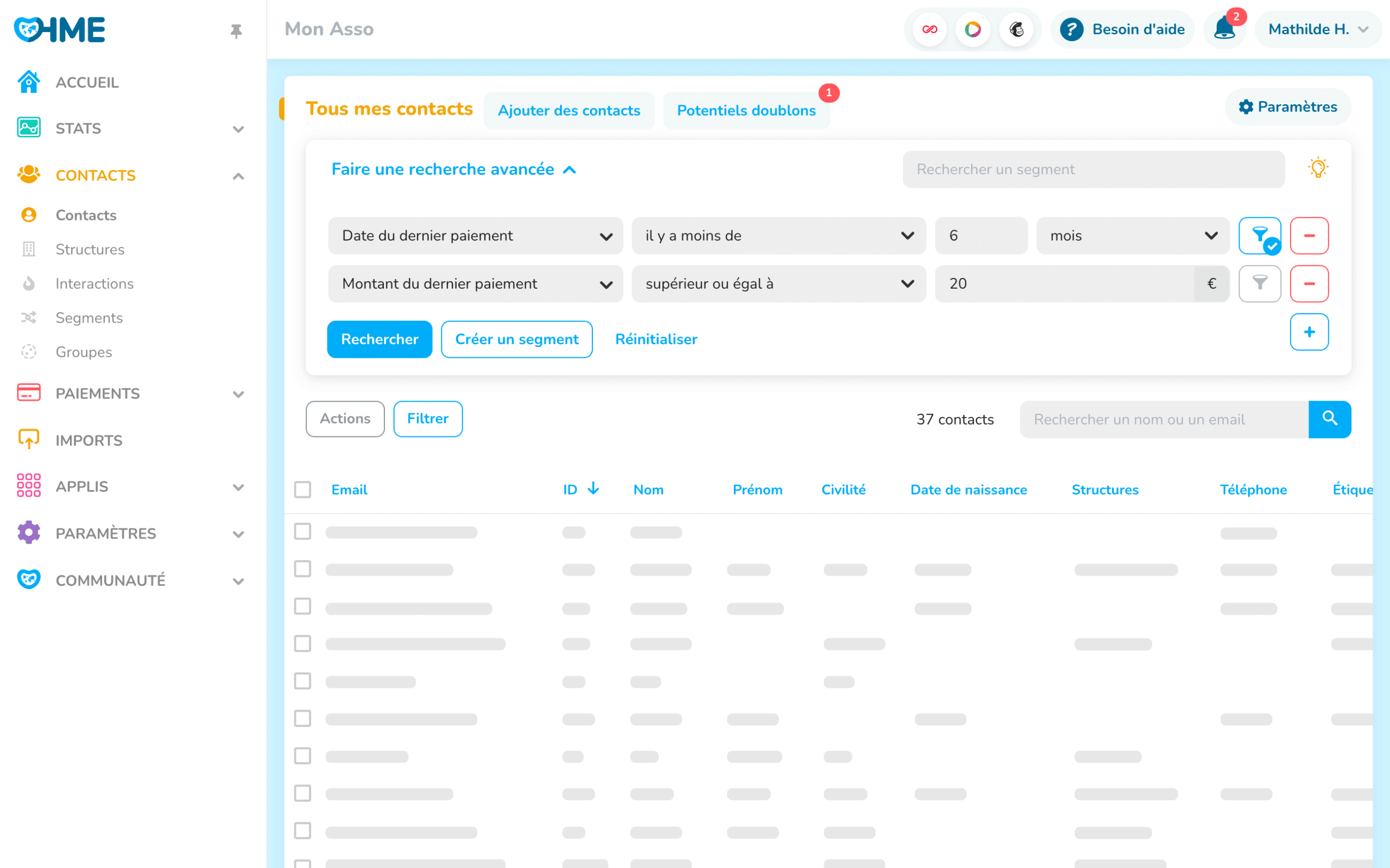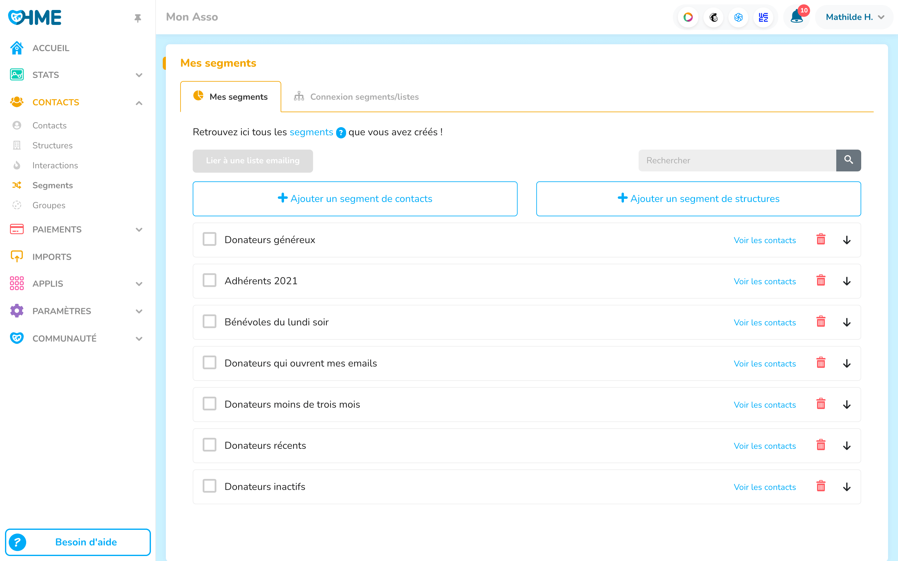 La segmentation est essentielle pour bien communiquer. On ne s’adresse pas de la même manière à un donateur régulier qui vous soutient depuis dix ans, qu’à un nouveau donateur. De même, on ne demande pas à un bénévole d’être disponible le week-end, alors qu’il vous avait dit n’être disponible qu’en semaine. Ou encore, on ne rappelle pas un potentiel mécène qu’un collègue a déjà appelé il y a deux jours. Chez OHME, la segmentation est au cœur du CRM, et c’est elle qui va vous aider à mieux engager vos communautés.