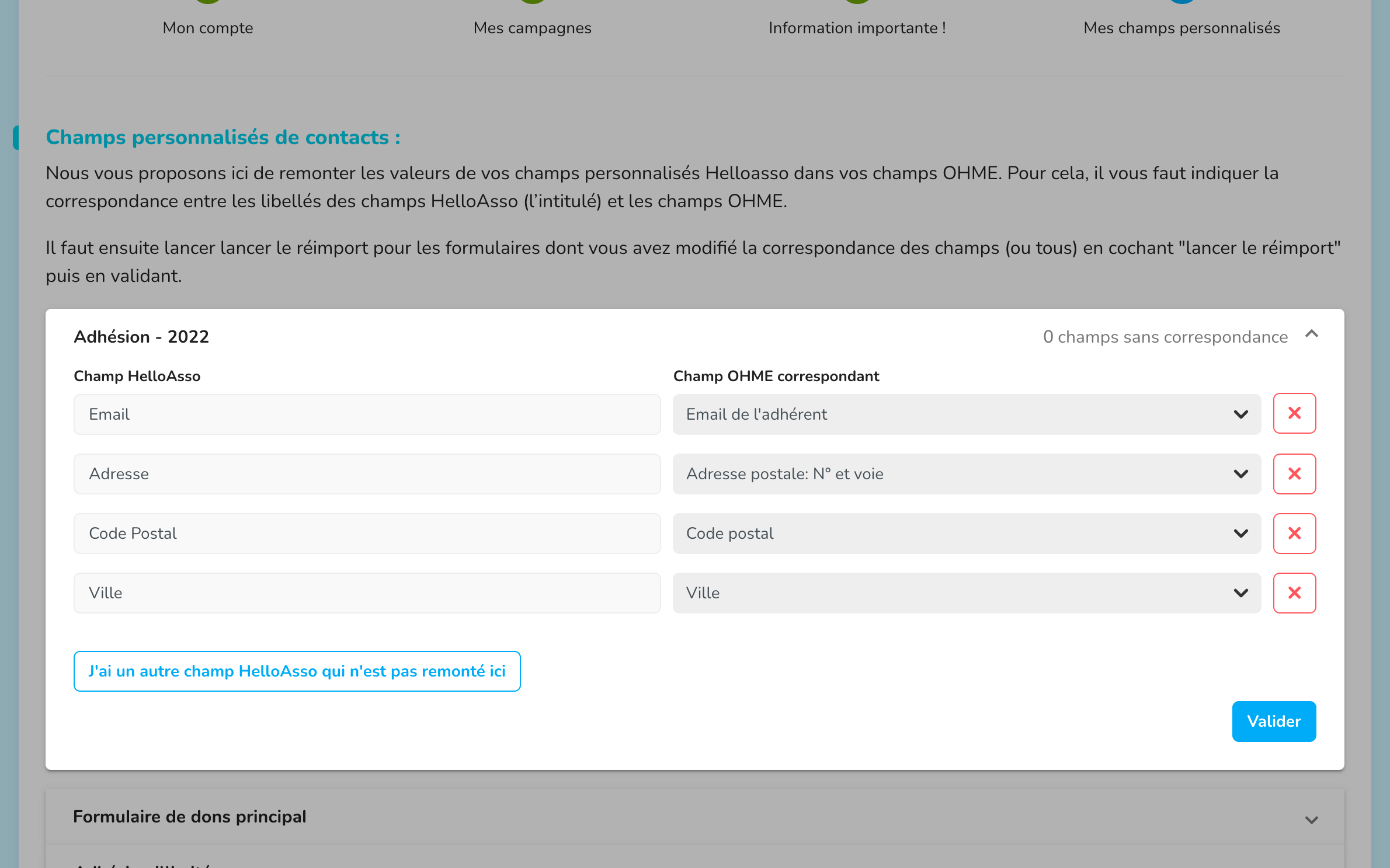entre les champs de l’appli partenaire et OHME. Et c’est bon !
