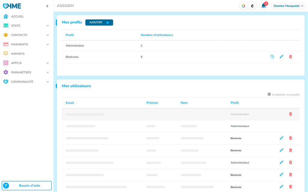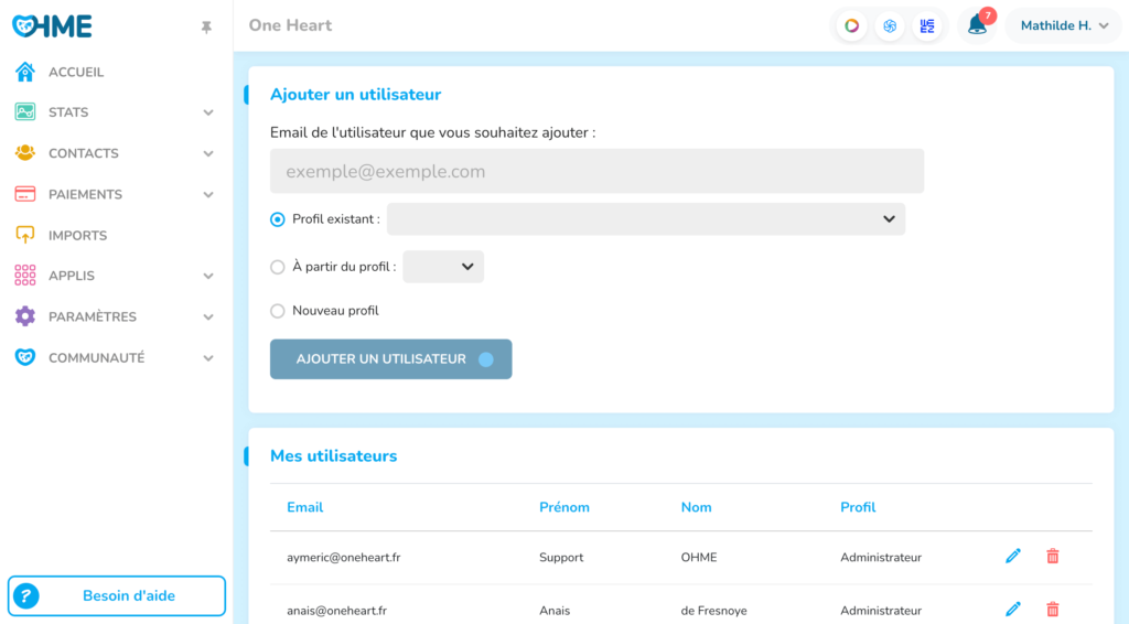 Avec OHME, vous pouvez non seulement attribuer des droits d’accès spécifiques à chaque membre de votre équipe en fonction de son rôle et de ses responsabilités, mais aussi :