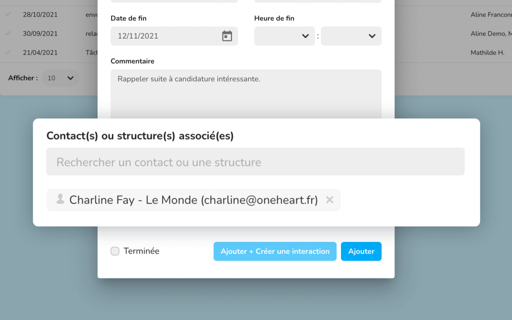 Création d’une interaction de la tâche réalisée pour garder un historique (seulement si elle était liée à un contact / une structure de votre base)
