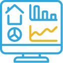 Des formats des blocs très variés : nombres, comparaison de nombres, pourcentages, montants, courbes, histogrammes, cartes géographiques, camemberts