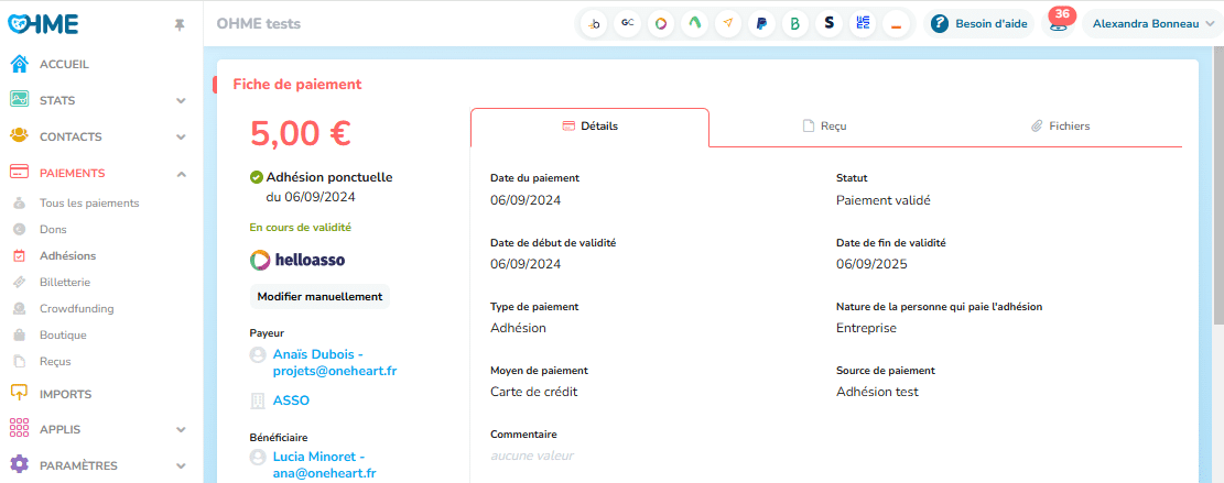 Grâce à votre connexion de HelloAsso à OHME - 4 cas concrets :