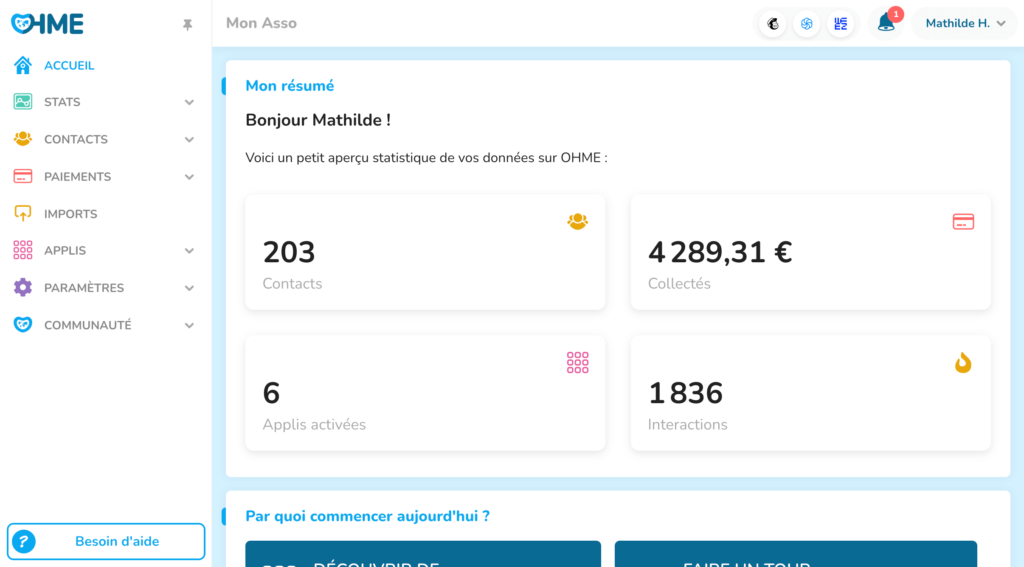 La plateforme OHME est connectée aux solutions de paiement utilisées dans le secteur associatif : HelloAsso, Stripe, iRaiser, GiveXpert, GoCardLess. En quelques clics, connectez ces solutions à OHME (sans connaissance technique), et vos dons remonteront automatiquement !