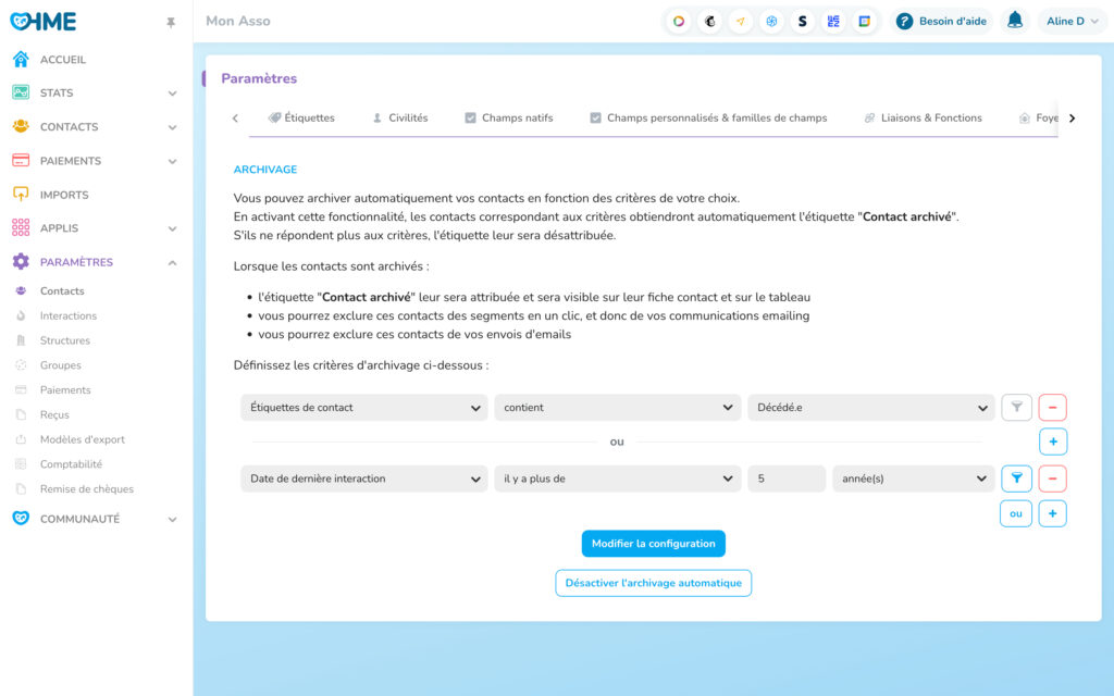 Grâce à OHME qui vous aide à centraliser vos données, vous détenez l’historique de l’entrée d’un contact sur votre base et toutes ses actions. S’il n’est plus actif depuis 3 ans et qu’il n’a pas fait de paiement – ce qui imposerait la conservation de documents comptables plus longtemps – vous devez ne plus le contacter. Et avec OHME, vous pouvez exclure de vos communications toutes les personnes n’ayant pas eu d’interaction avec vous depuis 3 ans en 2 clics par exemple.